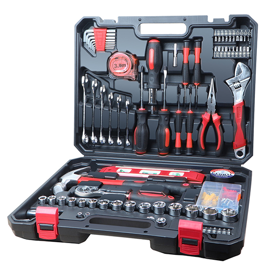 Needle-nose pliers, hammer, adjustable wrench, electrical tape, manual flat-blade screwdriver, manual cross screwdriver, manual ratchet screw socket, sleeve connecting rod, clock screwdriver (cross and two in each word), 3M tape measure, expansion 1 box of pipe fittings, level ruler, 1.5~6 hexagon wrench, manual ratchet wrench, open-end wrench 6PC (8#, 10#, 11#, 13#, 14, #16), 3 sets of bits (30 in total), Ratchet wrench connecting rod, sleeve 23PC (4~22)