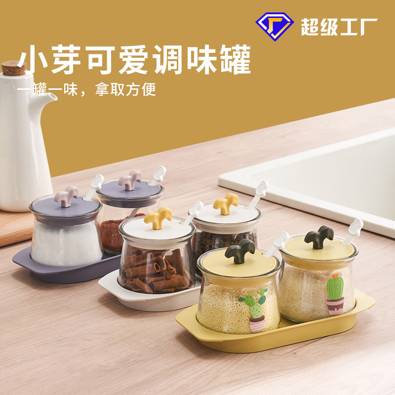 Seasoning jar glass salt jar kitchen seasoning jar household seasoning oil pot salt MSG seasoning box combination set