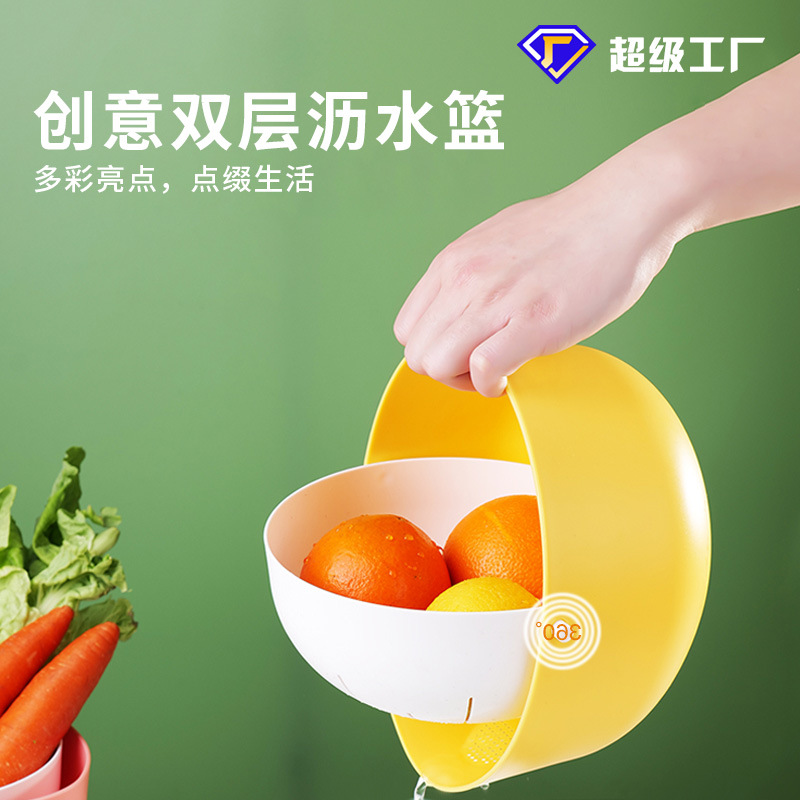 Double layer drain basket kitchen washing basket living room net red fruit plate filter wash dish household dish manufacturers
