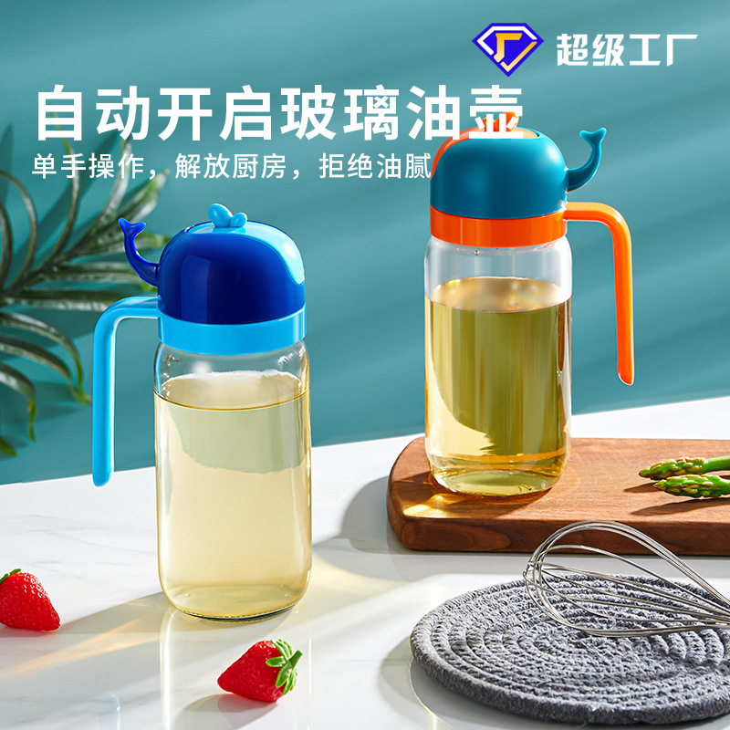 Glass oil pot automatically open and close leak-proof kitchen household oil bottle oil jar sesame oil soy sauce vinegar pot seasoning bottle oil bottle