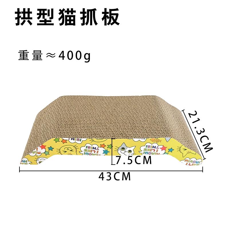 Product: Arch Bridge cat scratch board Item no: QBH - 008 Main material: corrugated paper Product size: 43*21.3*7.5cm Weight: 0.32 kg 36 PC\CTNCarton Size:70*46*67cmG.W.: 12.5KG