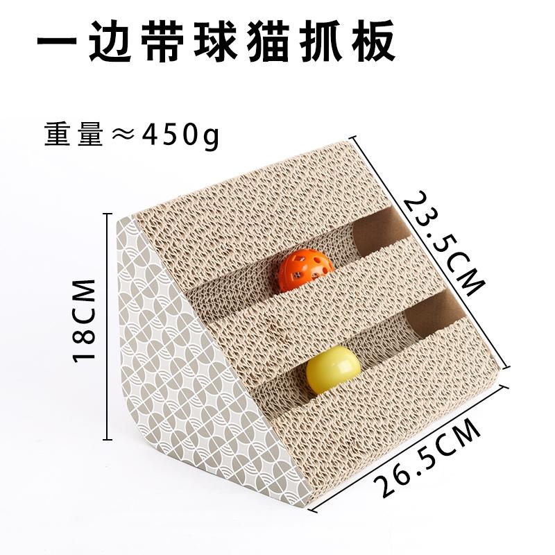 Product: Cat scratch board with ball on one side Item no: qbh-ybdqMain material: corrugated paper Product size: 23.5*26.5*18cm Weight: 0.42 kg 24 PC\CTNCarton Size:59.5*48.5*54.5cmG.W.: 11.1KG