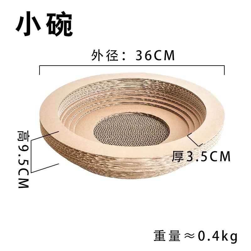 Product: Bowl - shaped cat scratch board small Item no: qbh-wxxhMain material: corrugated paper Product size: 36*9.5cm Weight: 0.56 kg 10 PC\CTNCarton Size:82*40*57cmG.W.: 6.6KG
