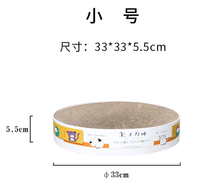 Product: Small round cat scratch board Item no: QBH - 3191 Main material: corrugated paper Product size: 33*5.5cm Weight: 0.44 kg 10 PC\CTNCarton Size:68.5*36*31cmG.W.: 5.4KG