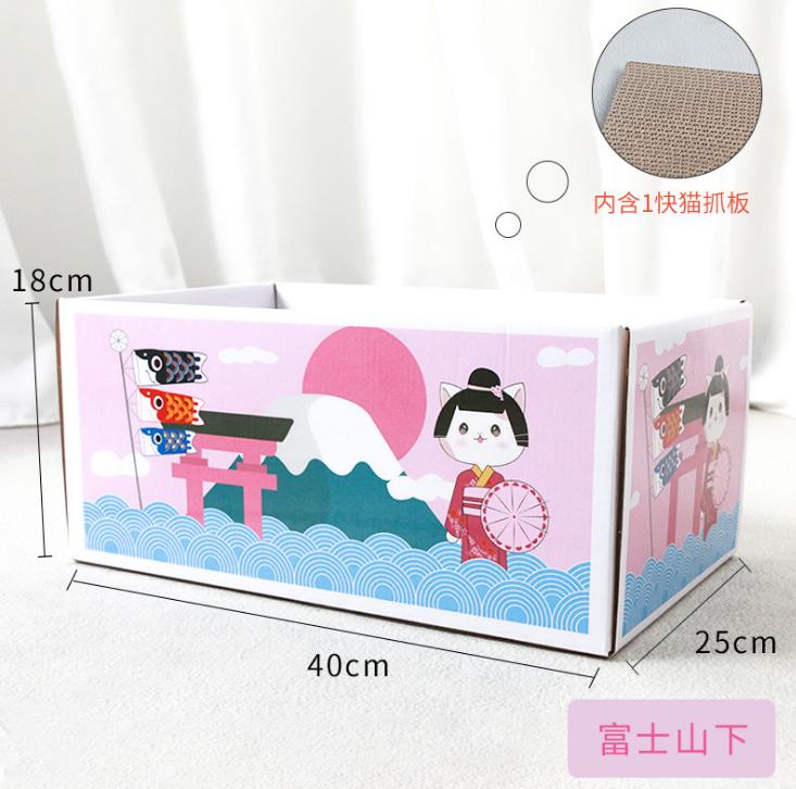 Product: Cat Box Item no: QBH - 500 Main material: corrugated paper Product size: 40*25*18cm Weight: 0.6 kg Style: Fuji Mountain, sightseeing buildings, delicious sushi 20 PC\CTNCarton Size:50*41*51.5cmG.W.: 13KG