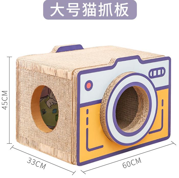 Product: Large cat scratch board for camera Item no: QBH - YC - 300 Main material: corrugated paper Product size: 60*33*45cm Weight: 4 kg 1 PC\CTNCarton Size:61.5*46.5*21cmG.W.: 5KG