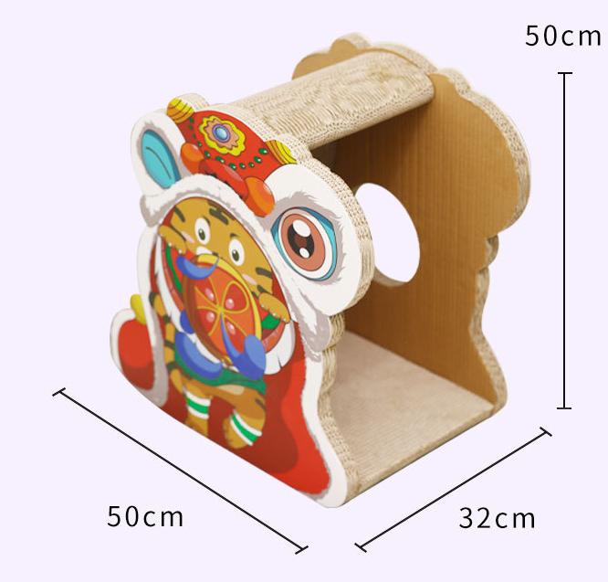 Product: Lion Dance cat scratch board Item no: QBH - CJZ0002 Main material: corrugated paper Product size: 50*32*50cm Weight: 1.9 kg 1 PC\CTNCarton Size:51.5*18.5*54.5cmG.W.: 2.9KG