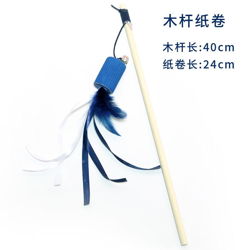 Product: Wooden pole paper roll cat stick Item no: QBH - 12142 Main material: roll paper, wood pole, feather, bell Wooden poles: 40 cm Paper roll length: 24CM