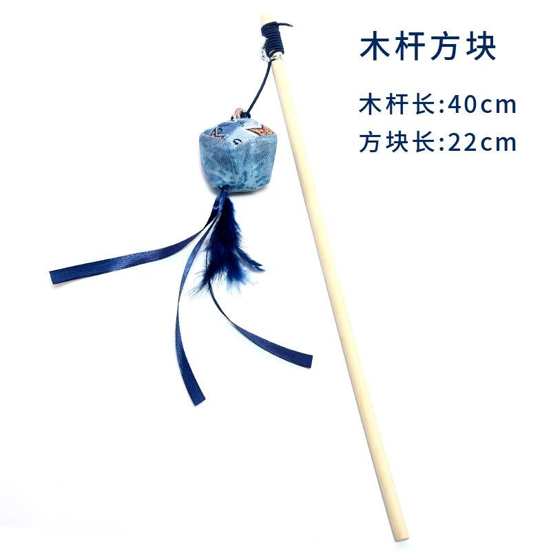 Product: Wooden bar block cat stick Item no: QBH - 12142 Main materials: canvas, wood pole, feather, bell Wooden poles: 40 cm Square length: 22CM