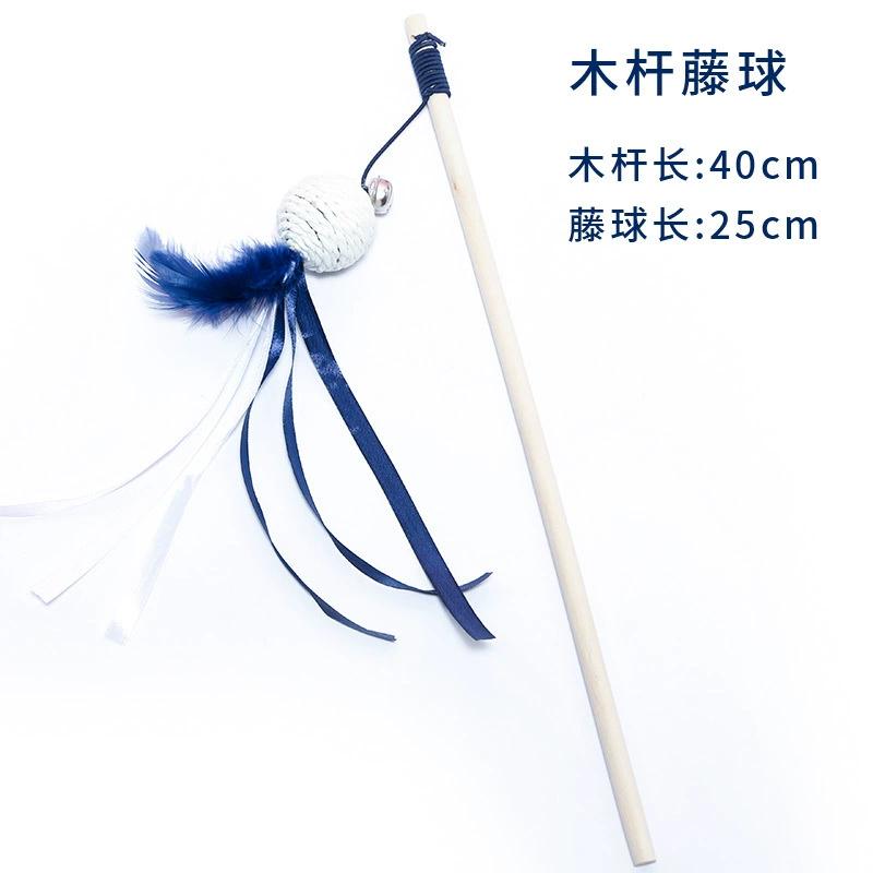 Product: Wooden cane ball cat stick Item no: QBH - 12142 Main material: rattan ball, wooden pole, feather, bell Wooden poles: 40 cm Rattan ball length: 25CM