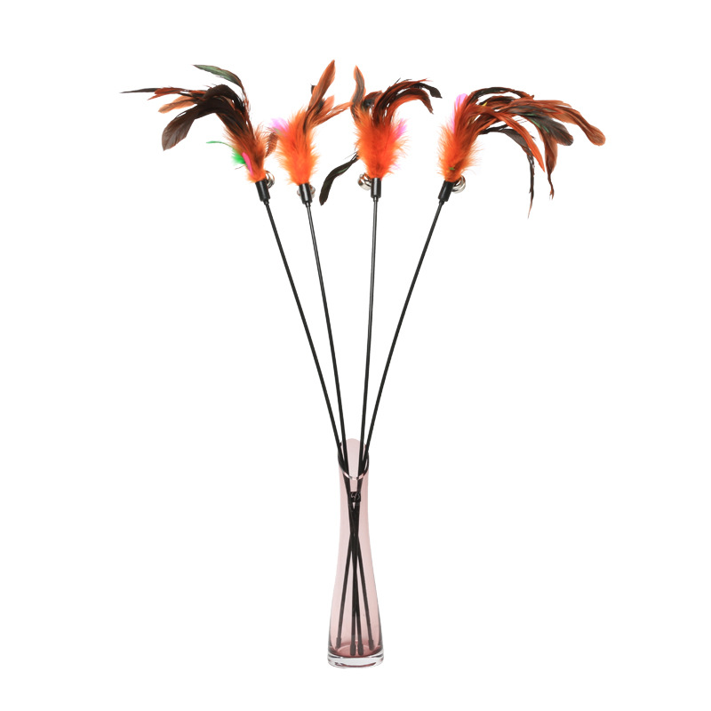 Product: Feather Cat Stick Item no: QBH - 509 Main material: PVC rod, chicken feather, bell 产品尺寸:65CM 重量:12g
