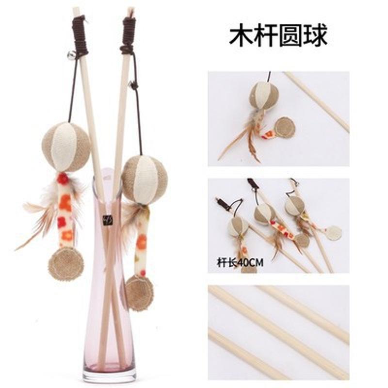 Product: Wooden pole ball cat stick Item no: QBH - 511 Main materials: wooden pole, bell, canvas doll Length: 40 cm Weight: 30 g