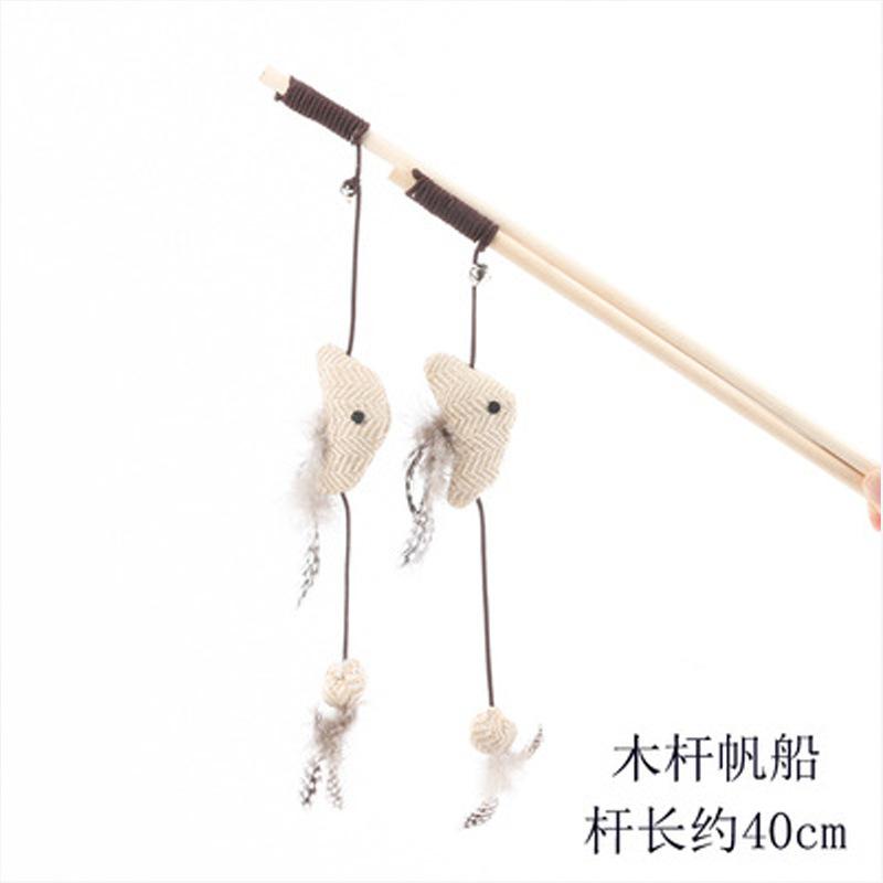 Products: Wooden pole sailing cat teasing stick Item no: QBH - 511 Main materials: wooden pole, bell, canvas doll Length: 40 cm Weight: 30 g