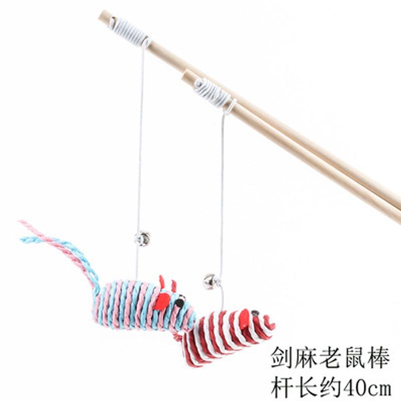 Products: Sisal Mouse Stick and cat Teasing Stick Item no: QBH - 511 Main materials: wooden pole, bell, canvas doll Length: 40 cm Weight: 30 g