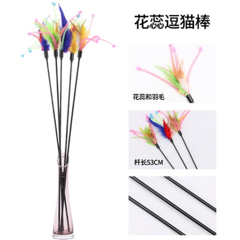 Product: Flower feather Rod tease cat rod Item no: QBH - 516 Main material: PVC handle, chicken feathers, bell Product size: 52CM