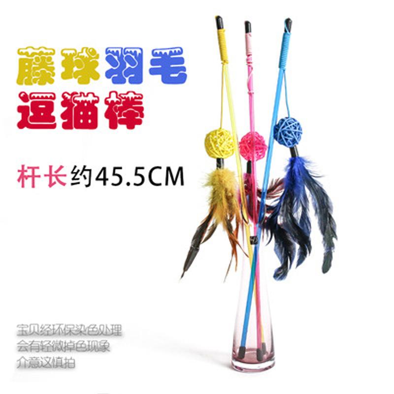 Product: Rattan ball Feather Teasing cat Stick Item no: QBH - 520 Main materials: PVC handle, chicken feathers, bell, rattan ball Product size: 45.5CM