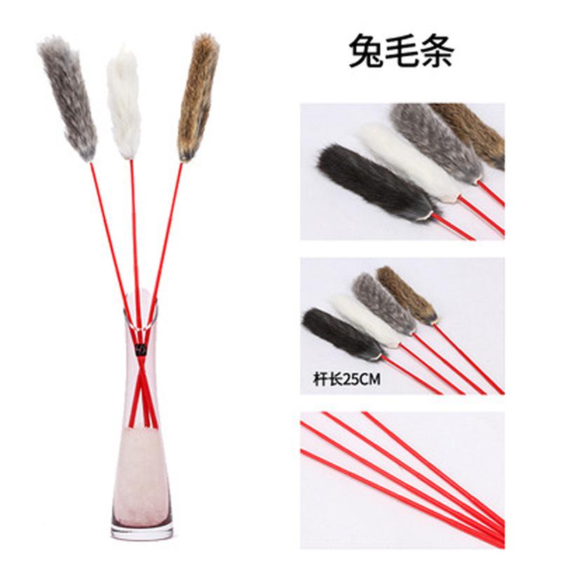 Product: Rabbit hair strip tease cat stick Item no: QBH - 522 Main material: PVC handle, rabbit hair Product size: 25CM