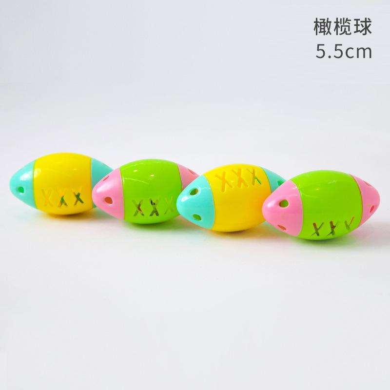 Product: Olive shaped ball Item no: QBH - 503 Main material: Plastic bell Size: 5.5 cm Color: Mixed color